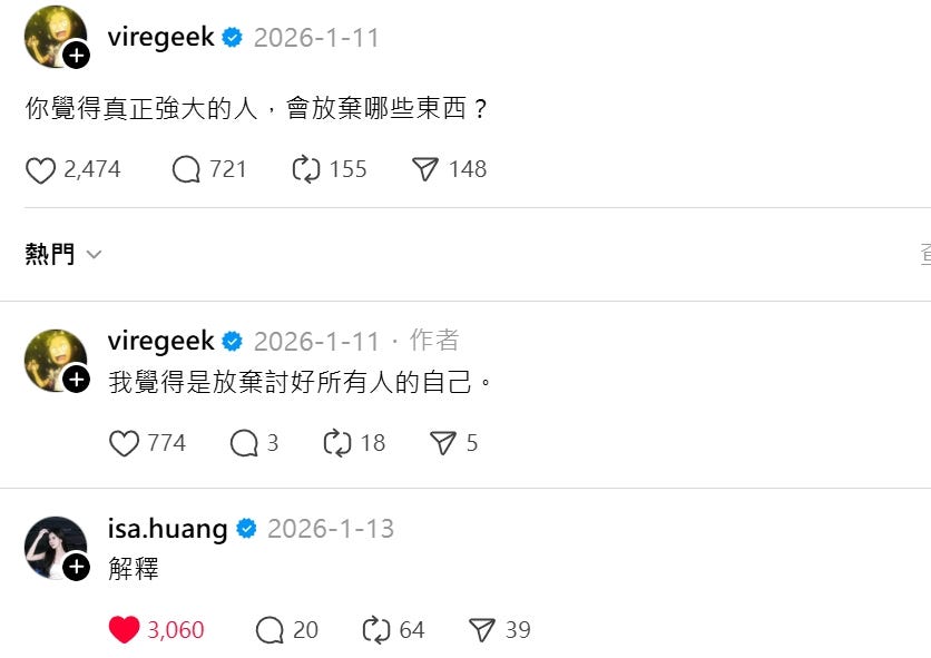 我近日最喜歡的一個問答,問題是:真正強大的人會放棄什麼?